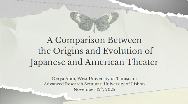 On November 12th, Derya Alim from CSEA was invited to speak during Professor Santiago Pérez Isasi’s Advanced Research seminar for master’s and PhD students. The presentation delved into the origins and early stages of Japanese and American theater. The comparative approach covered, among other ideas, the origins of both arts, how political and military leaders censored or commissioned plays to serve their political agendas, how the cultural elite and the public perceived the two types of theater, and similarities and differences in terms of language, themes, costumes, and stage design. The thought-provoking presentation led to interesting discussions, insightful questions, and the first step towards a wonderful connection between centers and departments.