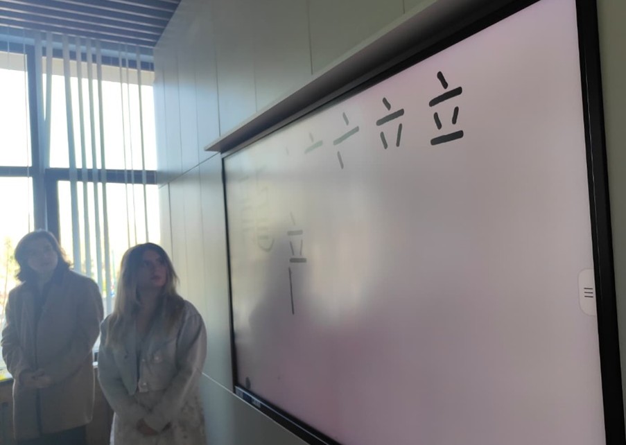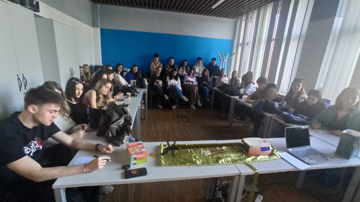 Students from the Japanese language and literature program at the West University of Timișoara have recently organized a language and calligraphy workshop for C. D. Loga National College 9th-grade students. Our students talked to the high schoolers about Japan’s writing systems, taught them how to introduce themselves in Japanese, as well as some basic Japanese language expressions and phrases using clips from well-known anime shows and movies.